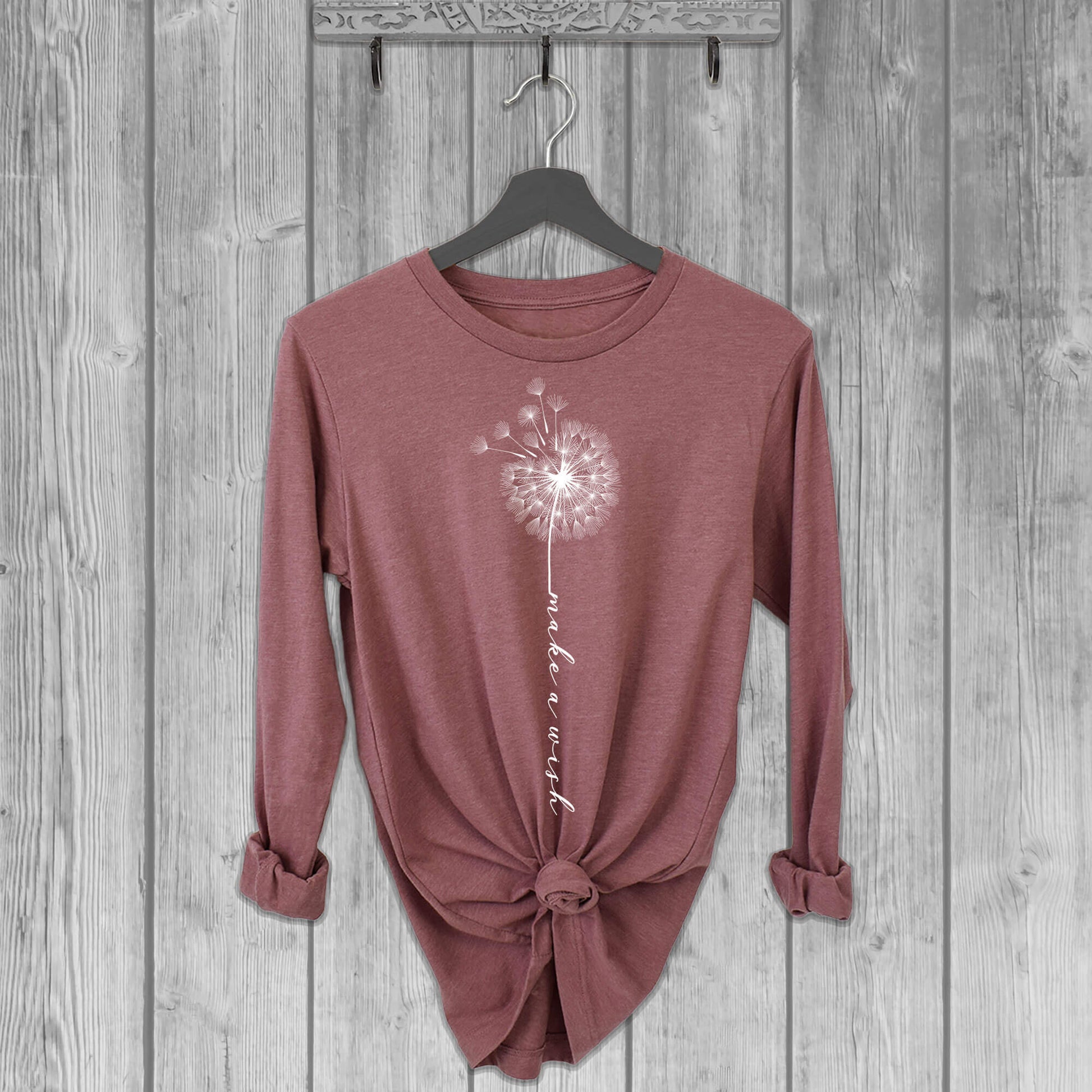 Make a Wish Danelion Long Sleeve Tee - Mauve