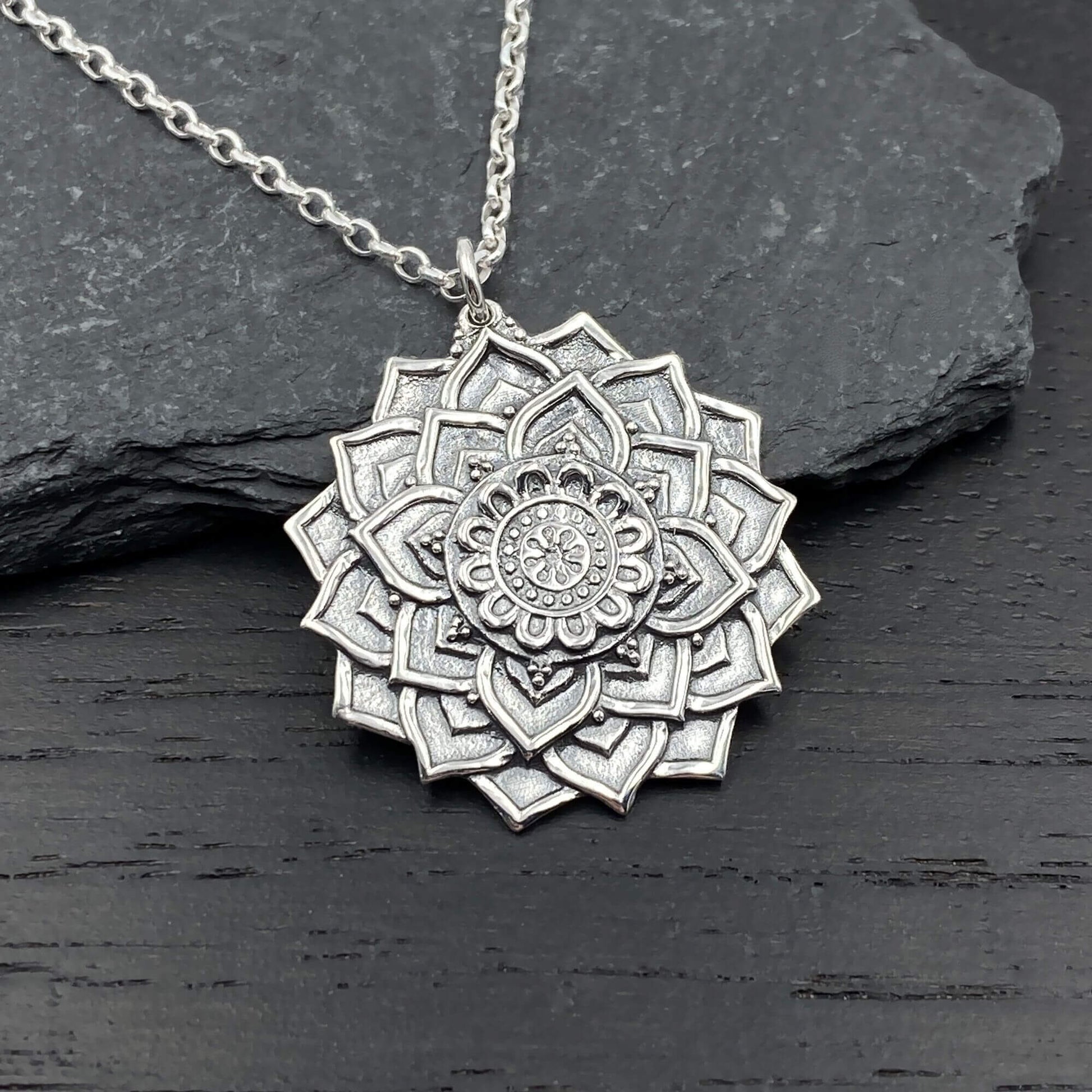 The Mandala symbolizes the universe in its ideal form. It is used in meditation to help achieve inner harmony and self-realization. The perfect jewelry gift for yoga friends.